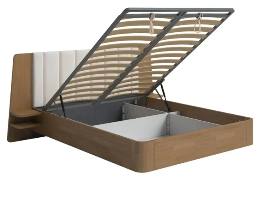 ➢ Встроенные полки на вылетах изголовья превращают кровать в комплексный предмет мебели, сочетающий в себе спальное пространство и дополнительные функциональные элементы, что обеспечивает удобство и стиль в одном изделии.